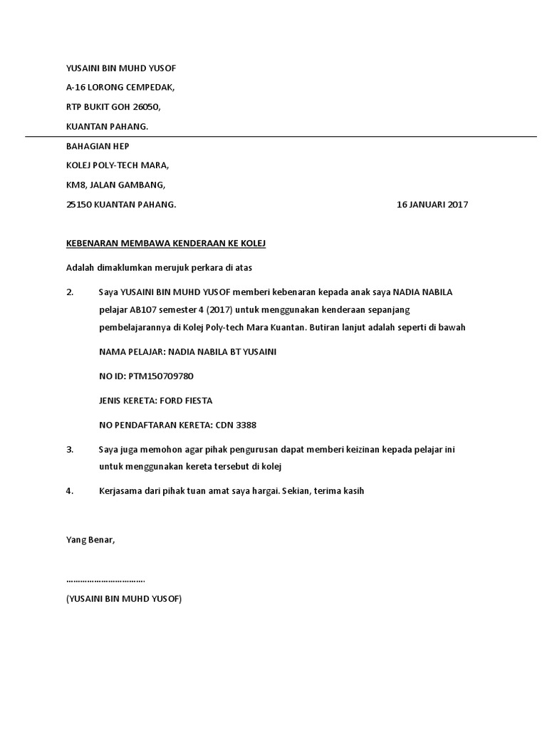 Surat Kebenaran Menggunakan Kenderaan Word Letter 7saudara Com